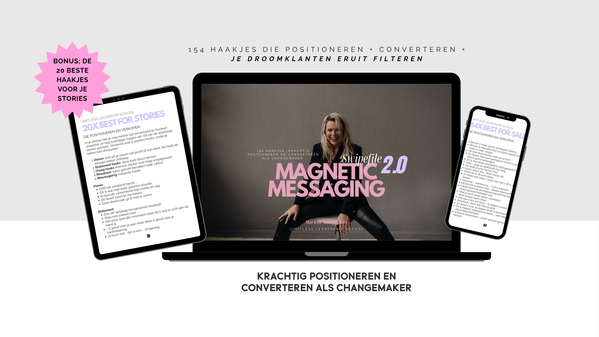 OMG! 21k omzet in 6 weken! En nu stap ik in de 250K club. De coaching is waardevol en praktisch. Ik haal er ontzettend veel uit. + De Mastermind “Magnetic Leaders” Mariëlle is echt de beste keuze van 2025 tot nu toe geweest. Ik zat compleet in de knoop met de inhoud van mijn nieuwe aanbod. Ik weet wel wat ik waard ben voor mijn klanten en welk resultaat ze behalen. Maar om dit in de juiste woorden aan te bieden zodat ze ook daadwerkelijk kopen…dat is andere koek. Mariëlle knalde in de Mastermind mijn complete salespagina eruit waardoor ik direct mijn cursusprogramma helder had, mijn website content, mijn masterclass (die ze ook nog nagelopen heeft) én social media content. Alleen al die salespagina heeft zich al terugverdiend. Laat staan wat nog komen gaat..